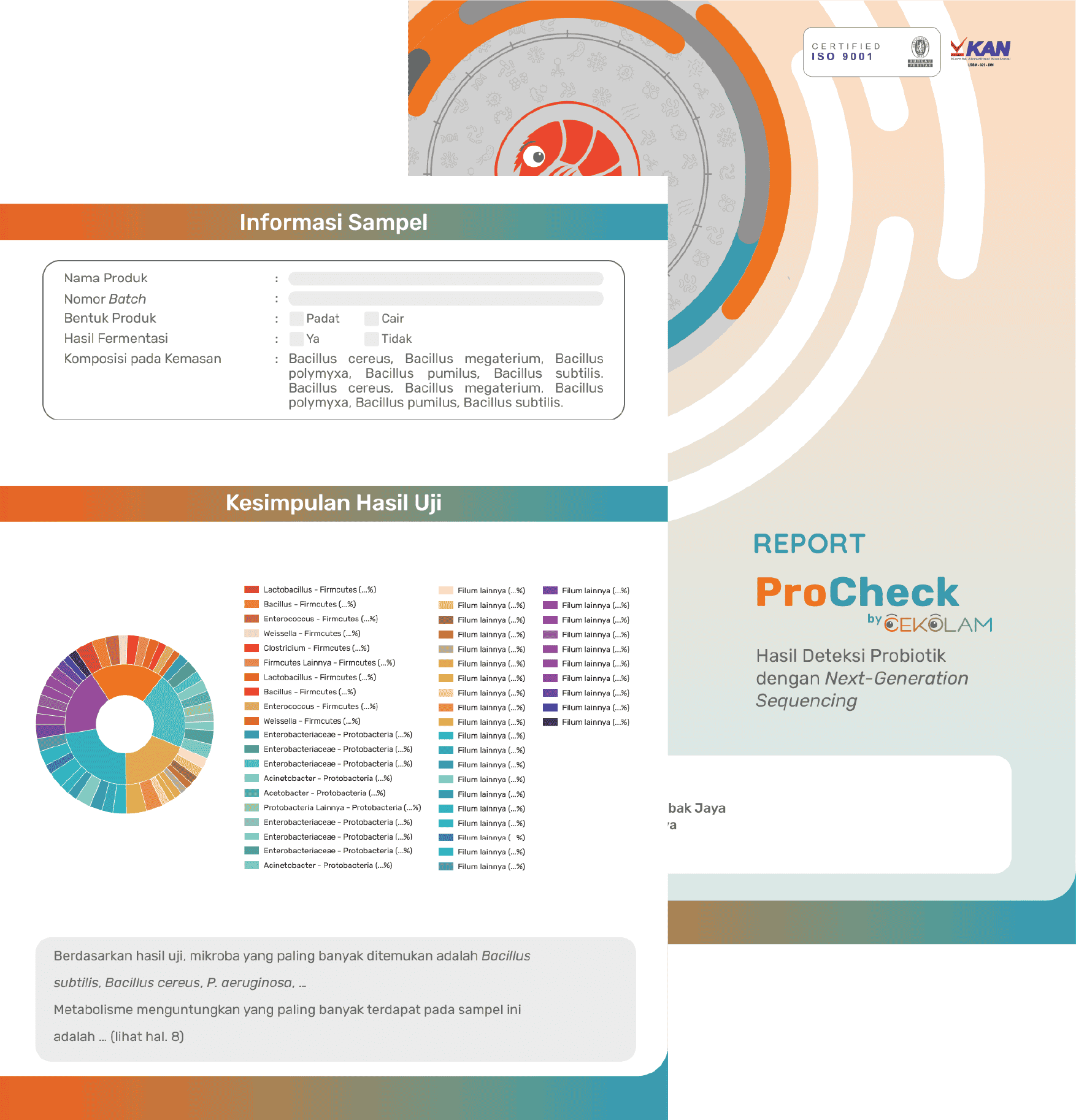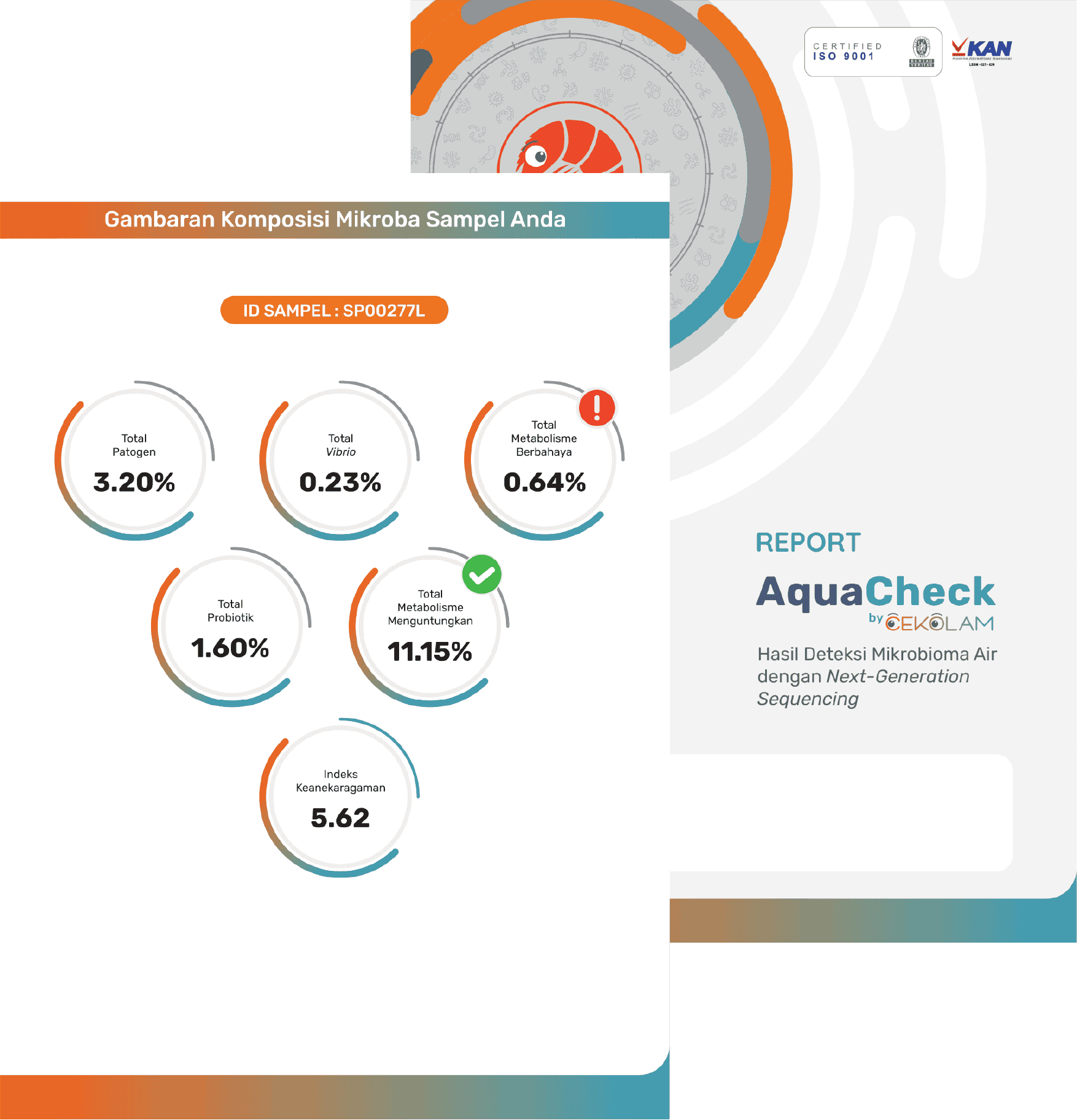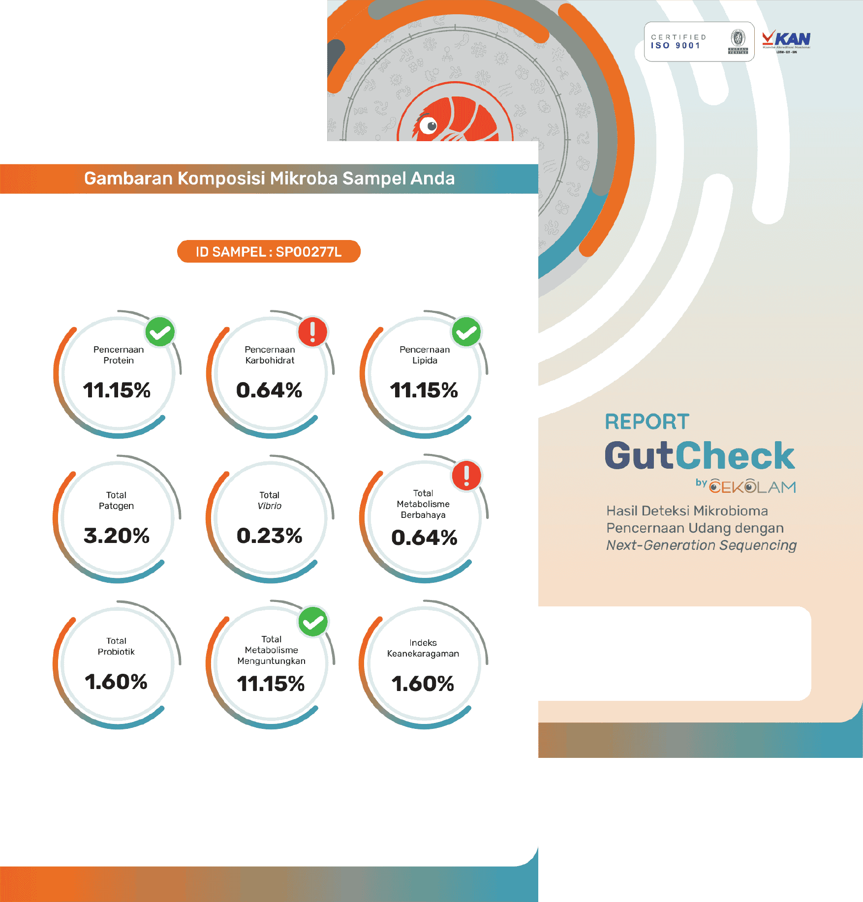 • GutCheck (pengecekan profil mikroba di usus udang)