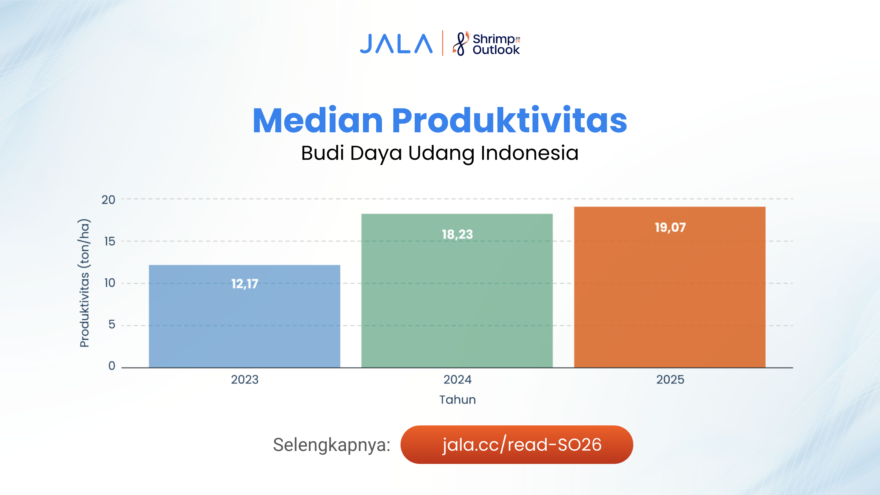 Pencapaian Indonesia dibuktikan dengan meningkatkan median produktivitas, “Apresiasi untuk seluruh petambak Indonesia yang tetap semangat tebar tahun 2025, meskipun dihadapkan berbagai tantangan”, ucap Liris Maduningtyas, CEO JALA. Indonesia juga masih mempertahankan posisi keempat sebagai negara eksportir udang dunia, walaupun pertumbuhan volume ekspor tahun ini stagnan -0,7% year-on-year.