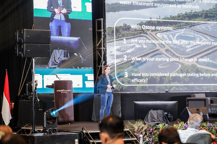 “Lebih dari 70% peserta acara ini adalah petambak. Selamat datang para petambak, acara ini free for the farmers, dan kami ingin acara ini jadi menjadi akses bagi para petambak mendapatkan insight yang berkualitas dan science-based untuk memajukan industri udang Indonesia.”