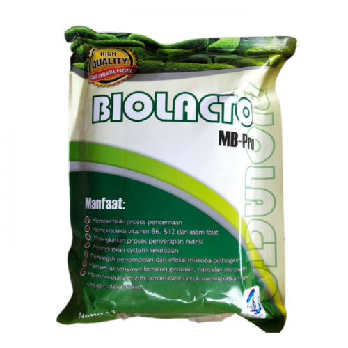 Probiotik Biolacto MB Pro merupakan probiotik yang berperan dalam fungsi pencernaan, sistem kekebalan dan kesehatan dasar kolam pada kegiatan budidaya udang. Probiotik mampu membantu meningkatkan pertumbuhan udang. Nomor Registrasi: KKP RI No. D 2206614 PB